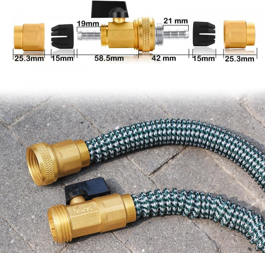2PK YELUN Garden telescopic hose end adapter with shut off Valve - gold