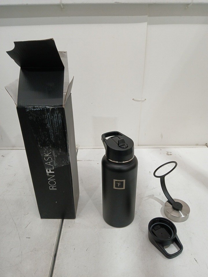 IRON FLASK VACCUUM INSULATED LEAK PROOF SPORTS WATER BOTTLE WITH 3 LIDS - 32OZ - BLACK