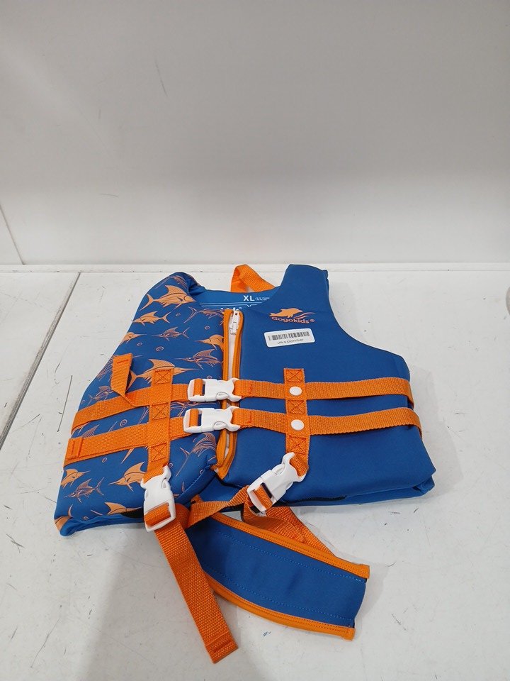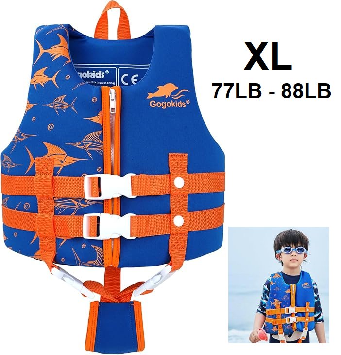 kid's gogokids Swim Vest Float life Jacket - EXTRA LARGE - 77LB-88LB - ORANGE SWORDFISH/BLUE - (MODEL: D5-YD-FBX0731604)