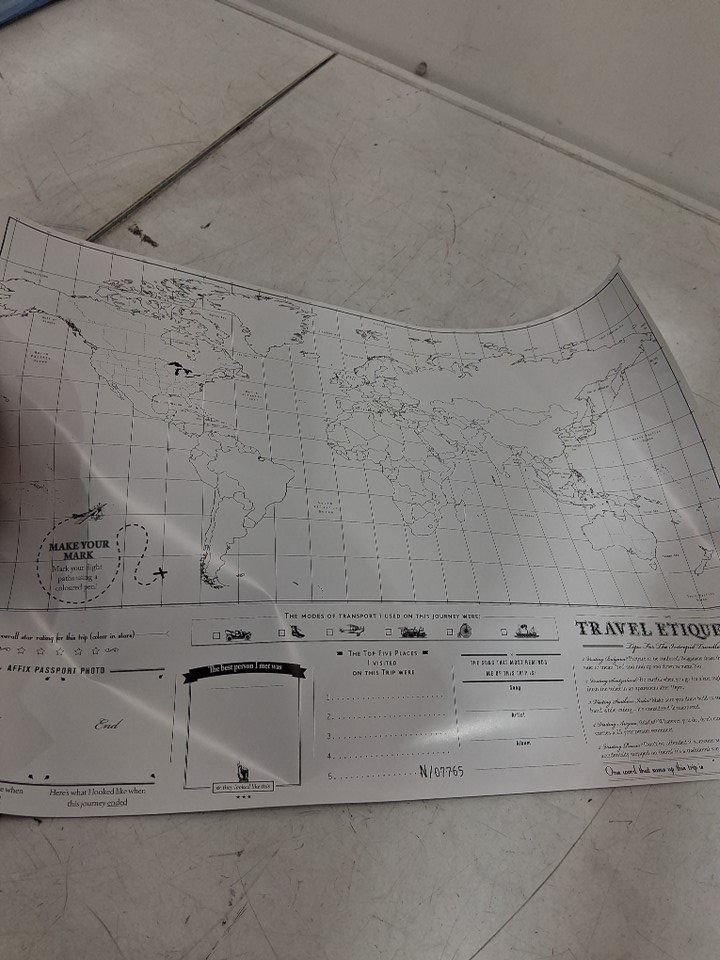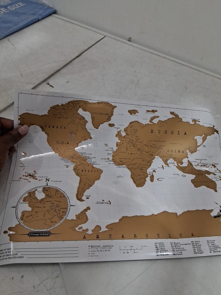 Luckies Classic Premium Gold Foil Top Layer Scratch-Off Map - World Travel Map featuring US, AU, and CA States, along with Islands- 16.14" x 11.69"-assorted colours-