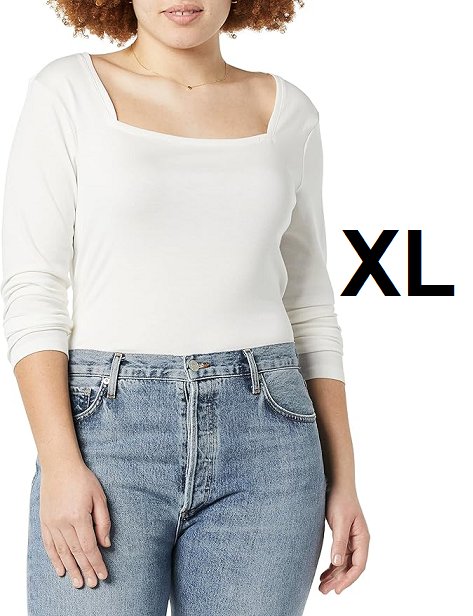 women's amazon essentials Slim-fit Long Sleeve Square Neck Shirt - extra large - white (style: aew30157ss22)