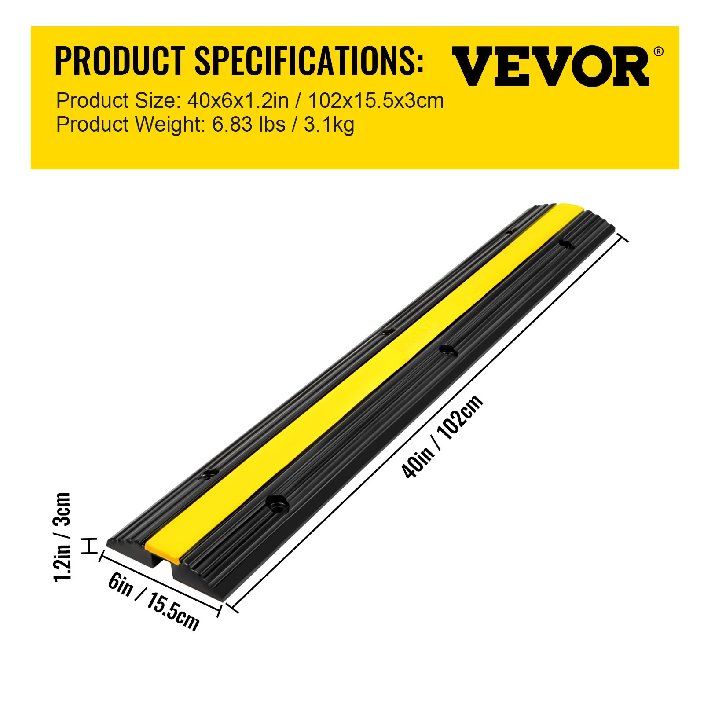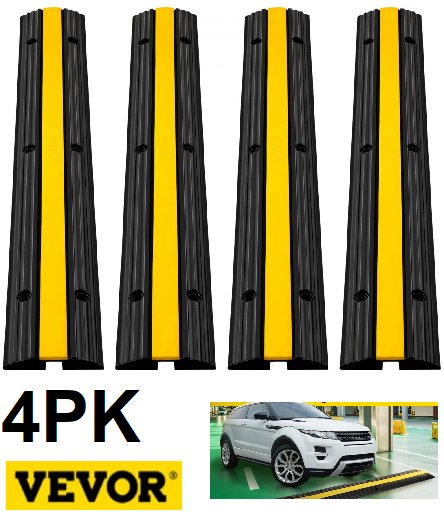 4PK VEVOR 1-CHANNEL RUBBER CABLE PROTECTOR RAMPS - HEAVY DUTY UPTO 18000LBS LOAD CAPACITY (model: CP-1EV-4)