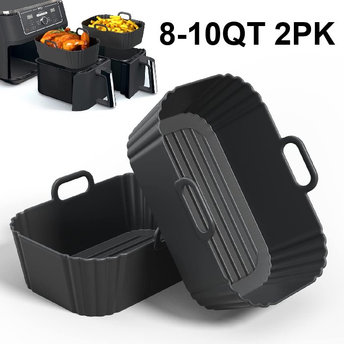 2PK Silicone Liner for Dual Air Fryer - 8qt-10QT - Black
