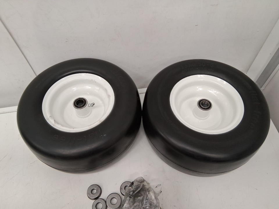 Wiltire 13x6.50-6 Lawn Mower Tires Flat Free Tire and Wheel with Rim with 3/4" extra 5/8" 1/2" Bushings - 6" - black/white