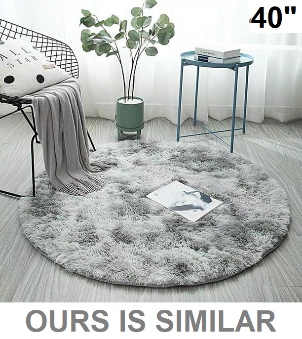 Ultra round Soft Modern Area Rugs Shaggy Rug Home Room Plush Carpet - 40" - grey / white