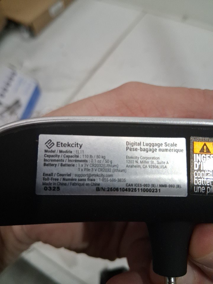 ETEKCITY DIGITAL HANGING LUGGAGE SCALE PORTABLE HANDHELD THERMOMETER SENSOR - 100LBS MAX -SILVER/BLACK (MODEL: EL11)