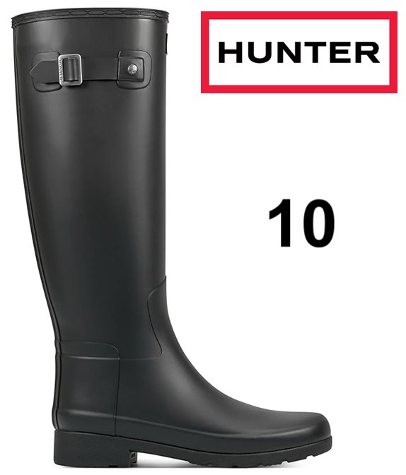 Women's Hunter Refined Tall Rain Boots - Size 10 Medium - Black (Style: WFT1000RMA)