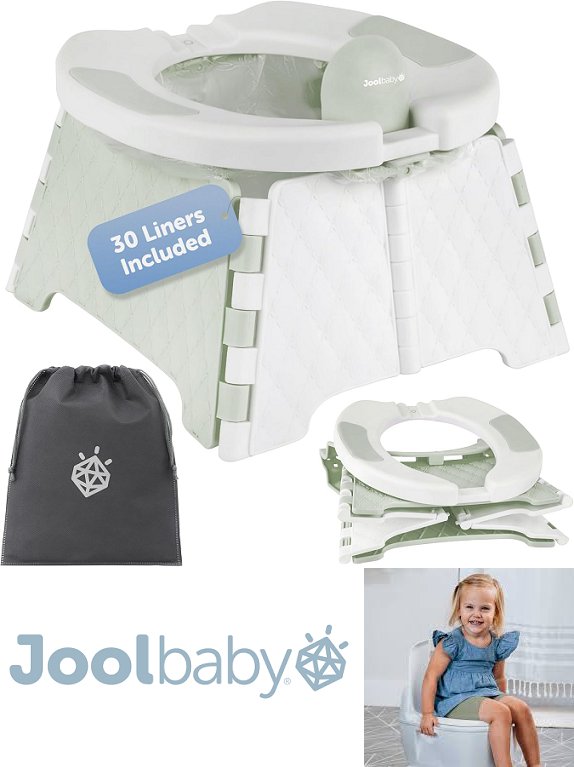 Jool Baby Portable Potty Training Chair with Travel Bag and 30 Liners - green/white