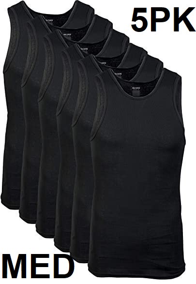 5PK MEN'S GILDAN A-SHIRT TAGLESS TANKS - MEDIUM - BLACK