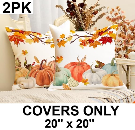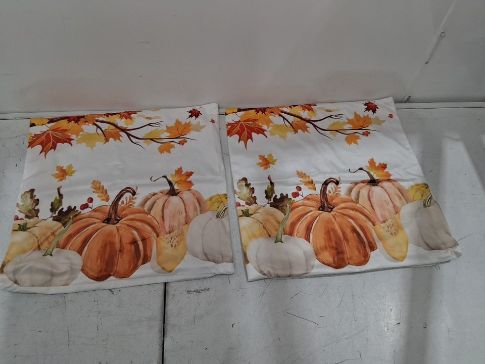 2pk rabusofa pumpkin and maple leaf fall themed pillow covers - 20'' x 20'' - Multicolour