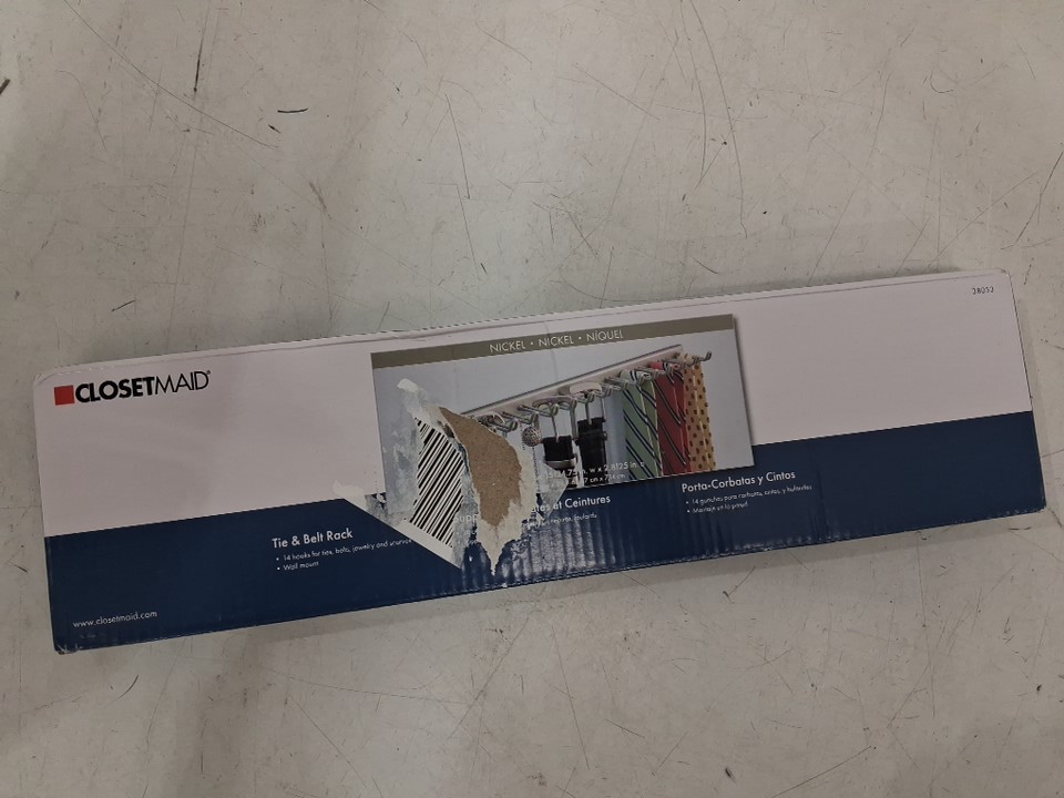 CLOSETMAID EASY INSTALL HOOK TIE & BELT SLIDING RACK With 14 HOOKS - .88" x 2.75" x 15" - NICKEL (MODEL: 38053)