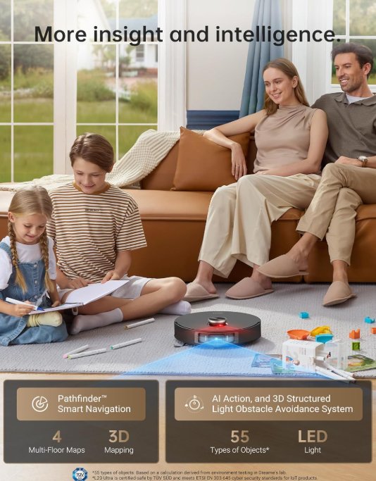 DREAME L20 Ultra Robot Vacuum and Mop with Mop-Extend, Auto Mop Removal & Raising, Washing, Drying AND AI Obstacle Avoidance, 7000Pa Suction - BLACK (MODEL: RLX41CE)