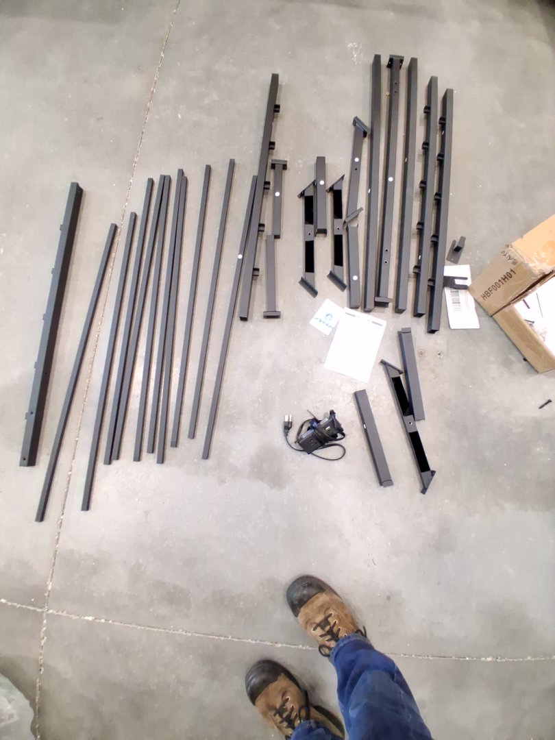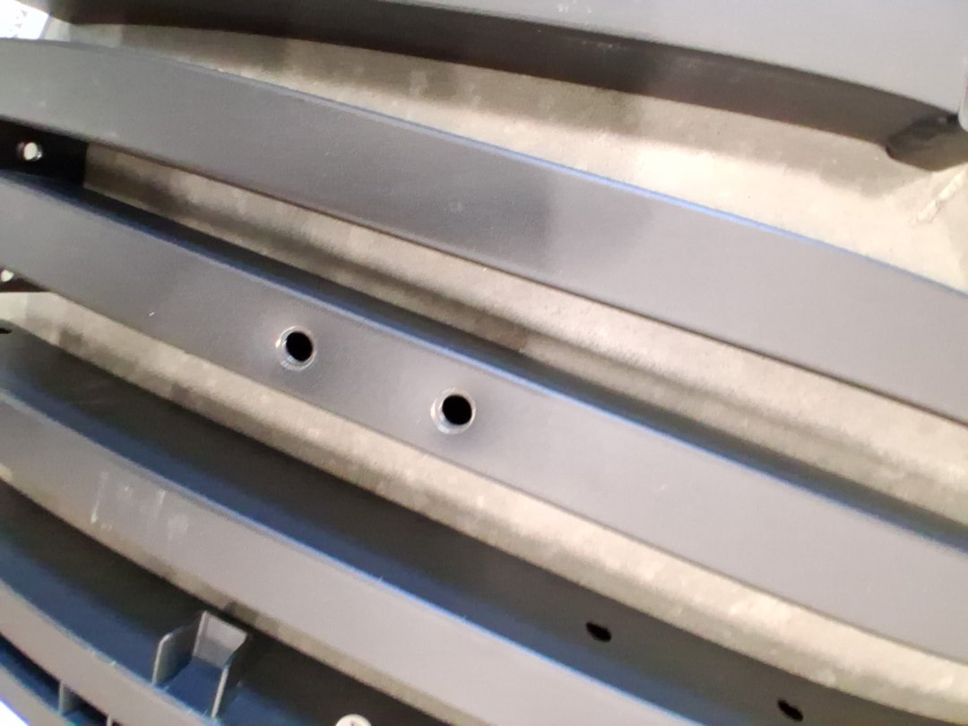 Metal bars show sign of previous assembly due to paint stripped on the screw holes, 2 metal bars show dents. LED tested