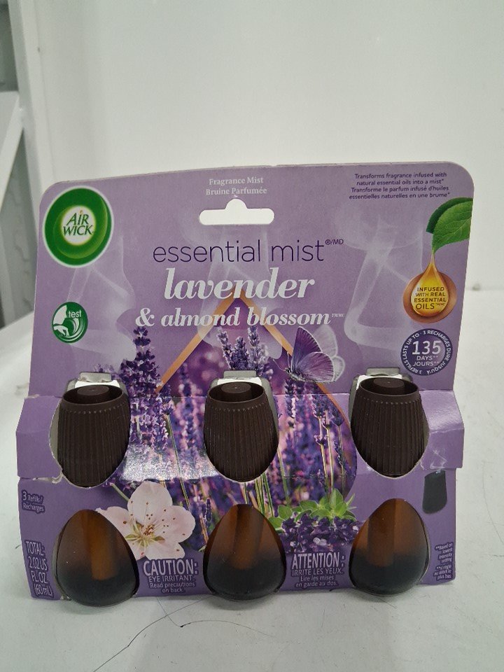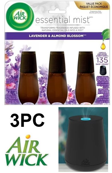 3PC airwick essential mist fragrance oil diffuser refill - 60ml each - lavender and almond blossom