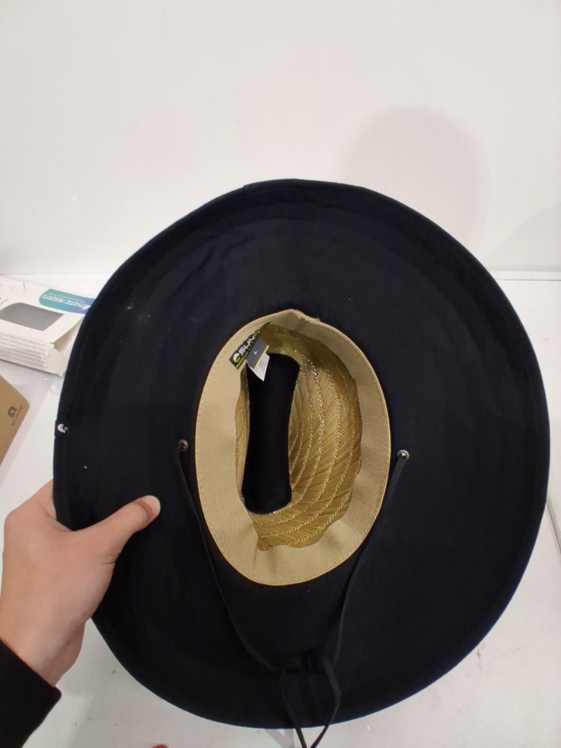 Scuff mark on the under part of the brim and a couple of straw pieces are coming off