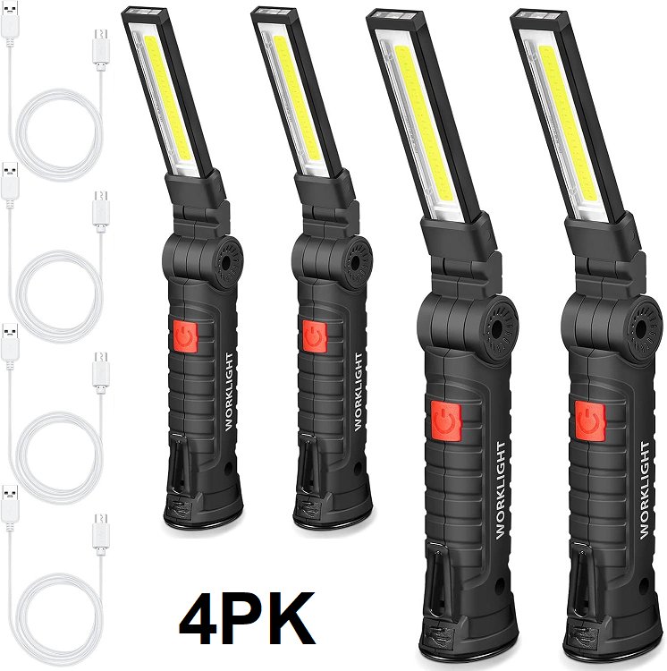 4pk Honoson LED Light Cob Rechargeable Work Flashlight - black