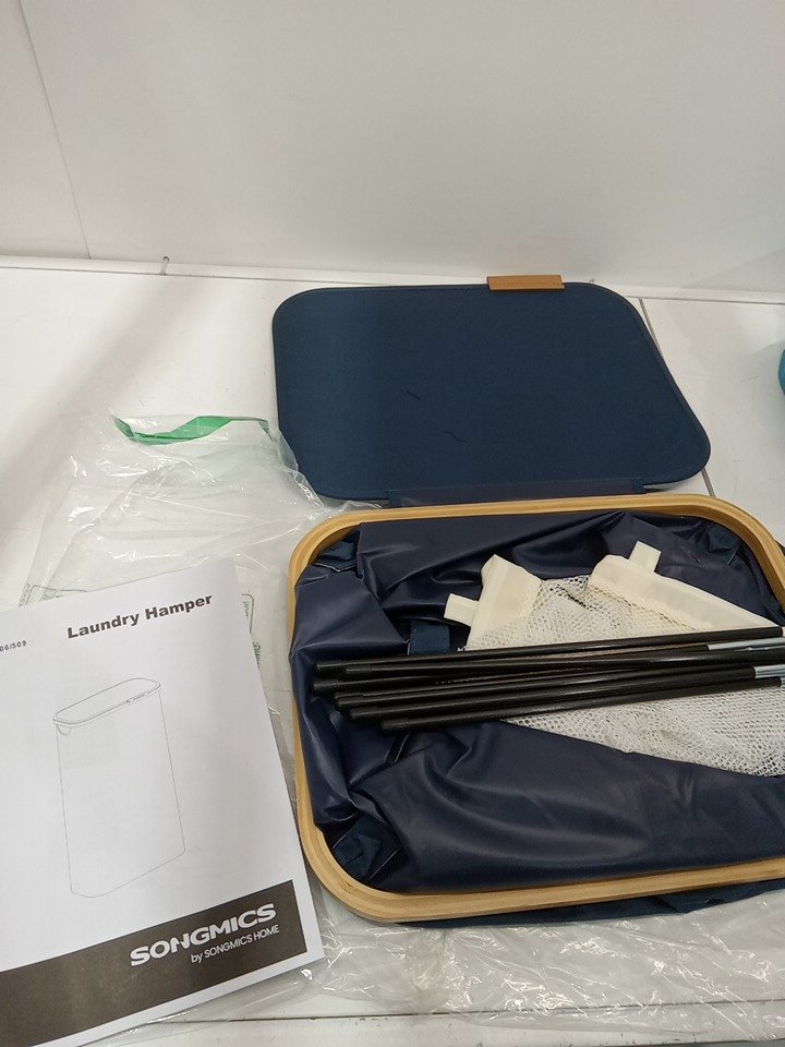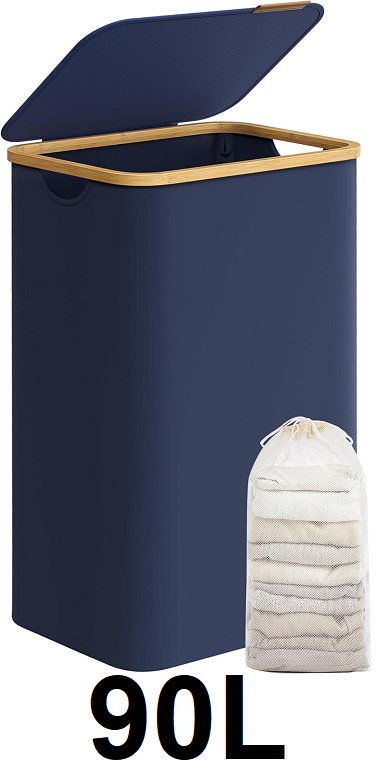SONGMICS Laundry Hamper with Lid and mesh liner - 90L - navy blue