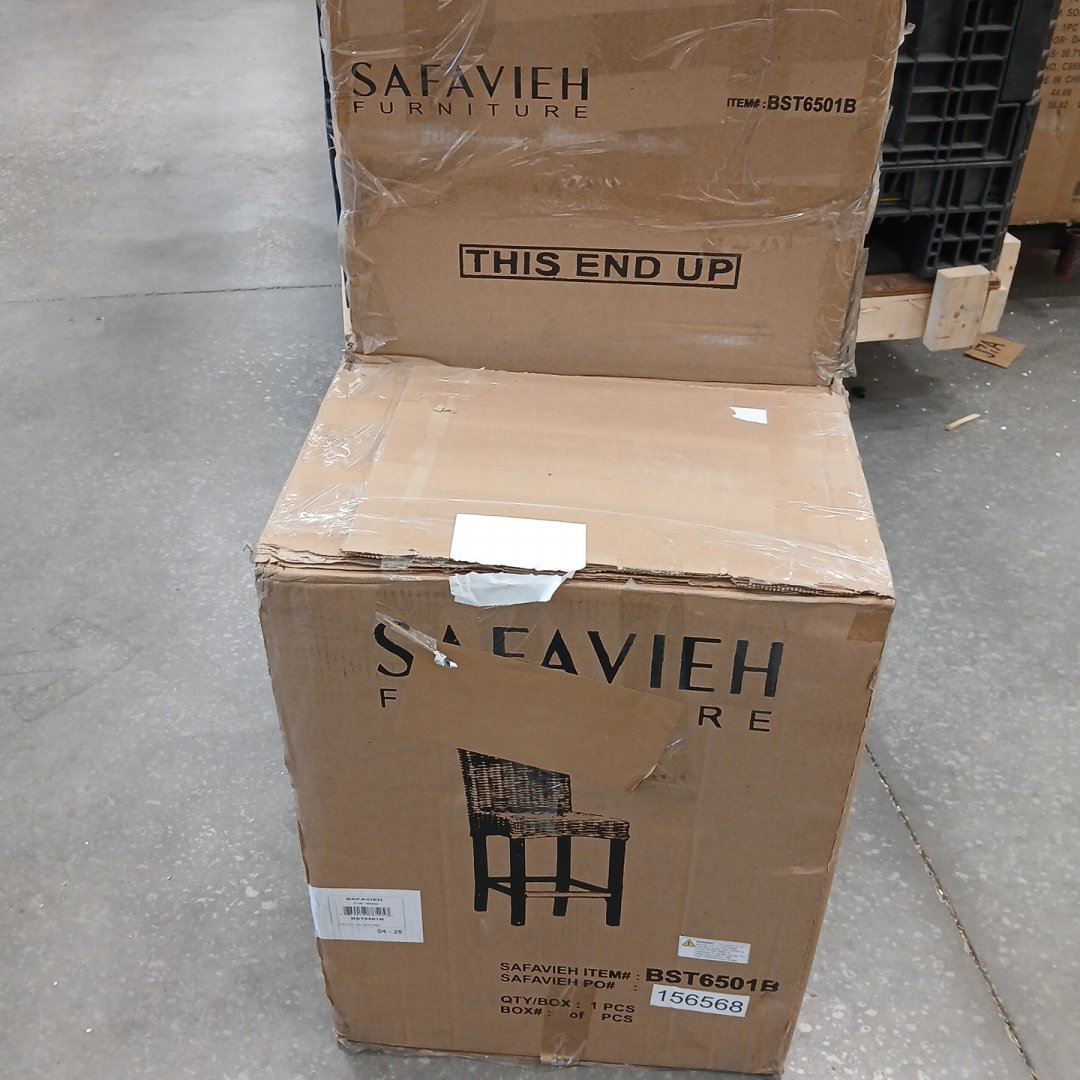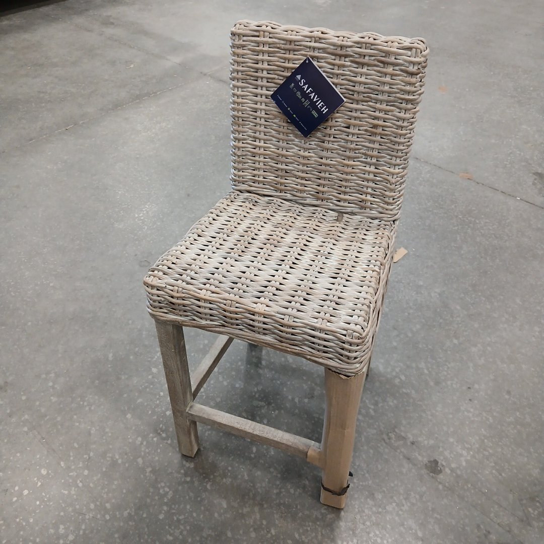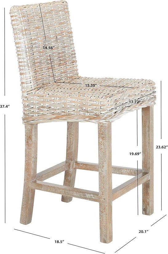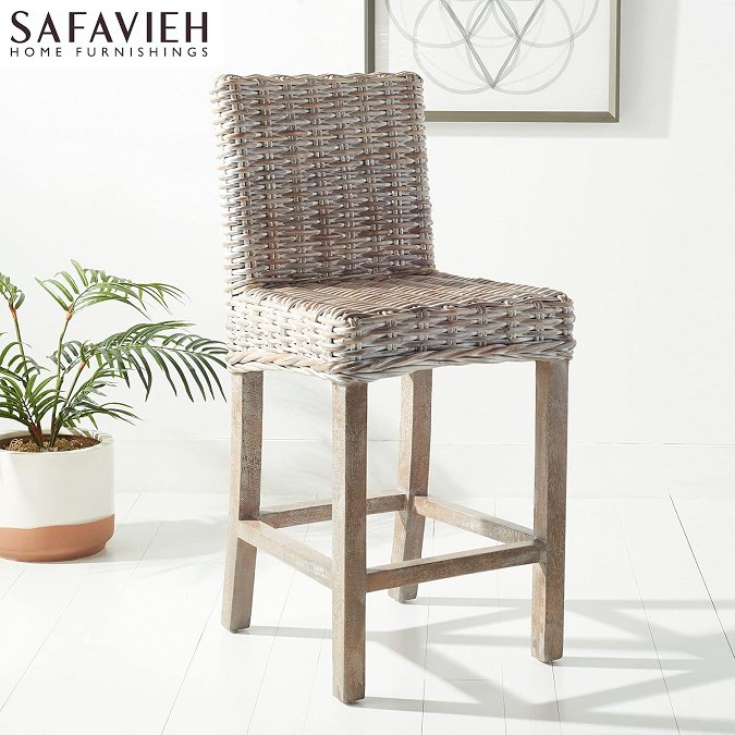 SAFAVIEH FURNITURE Tobie Rattan Counter Stool - 24" - WHITE WASH GREY (MODEL: BST6501B)