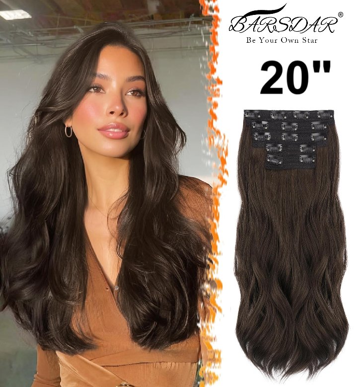 5PC BARSDAR Loose Layered Synthetic Wavy Clip-in Hair Extensions - 20" - Dark Brown