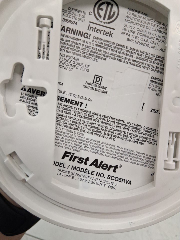 BRK FIRST ALERT SMOKE AND CARBON MONOXIDE DETECTOR ALARM - white (MODEL: SCO5RVA)