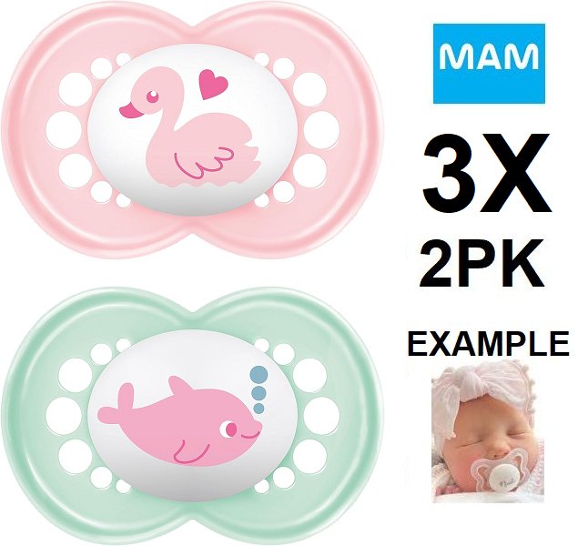 3 (2PK) MAM original silicone pacifier/soother - 16M+ - WHITE/PINK/blue flamingo/whale