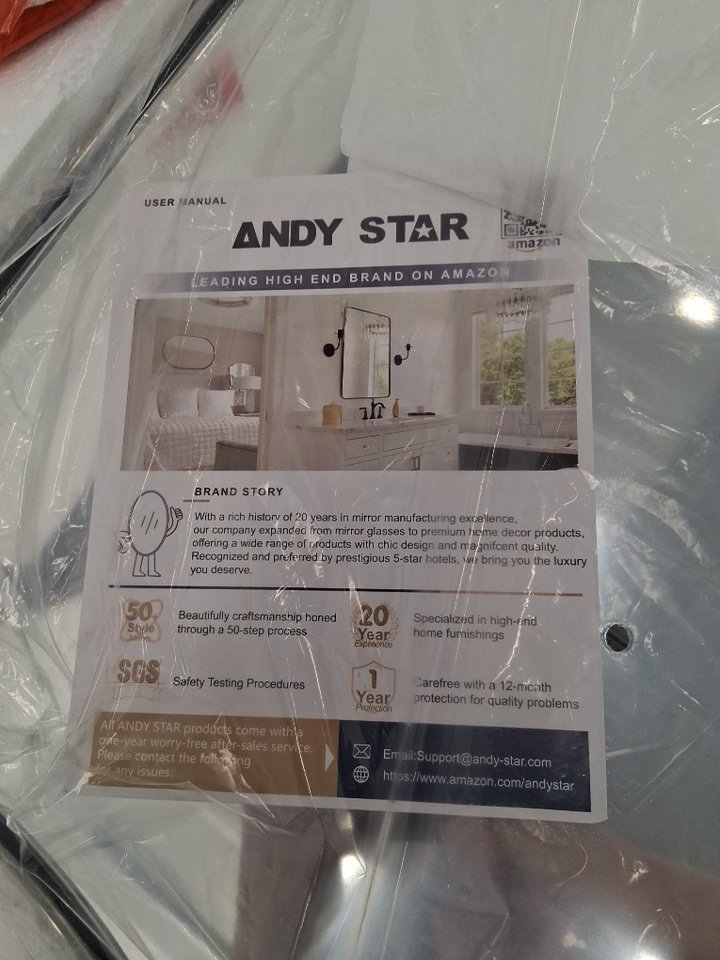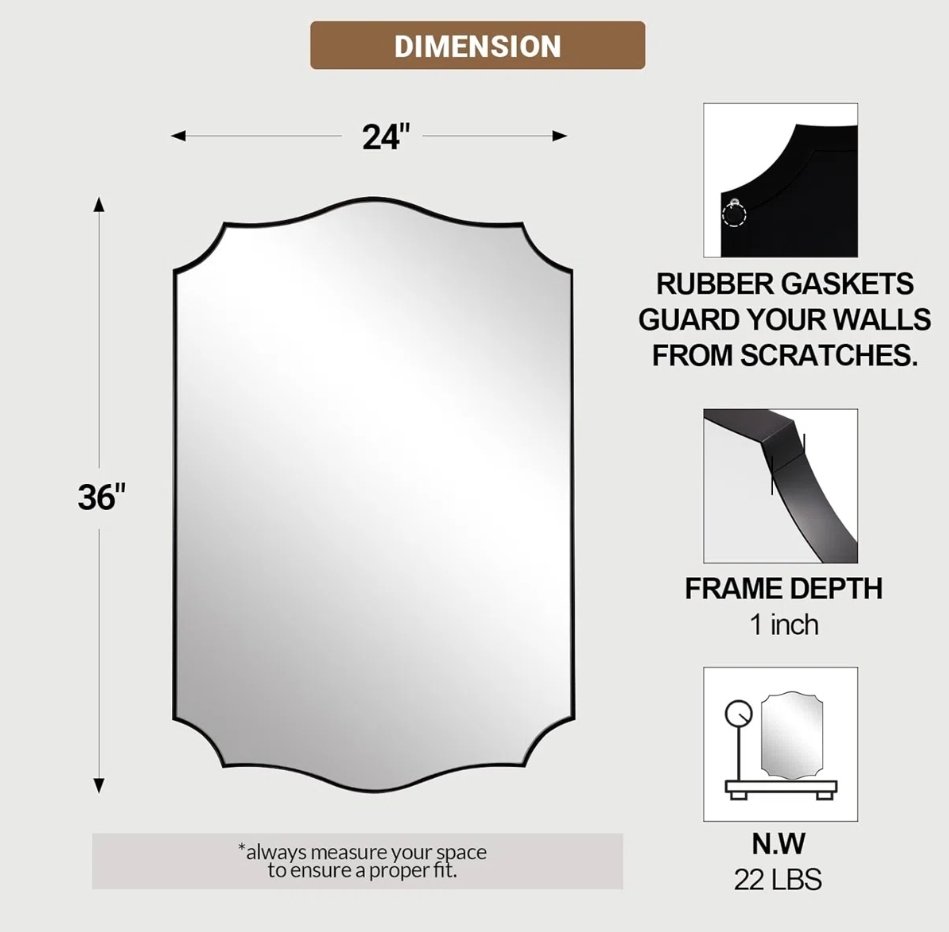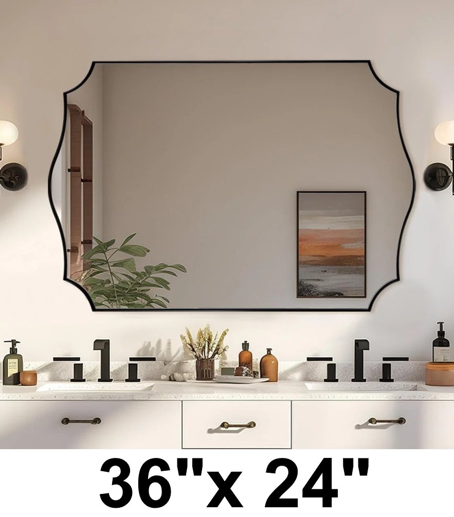 andy star scalloped rectangle wall mirror with stainless steel frame - 36" x 24" - matte black -