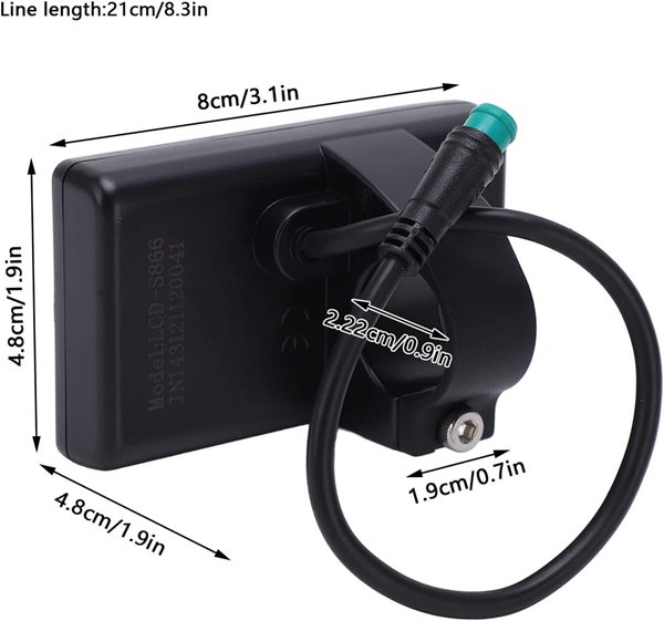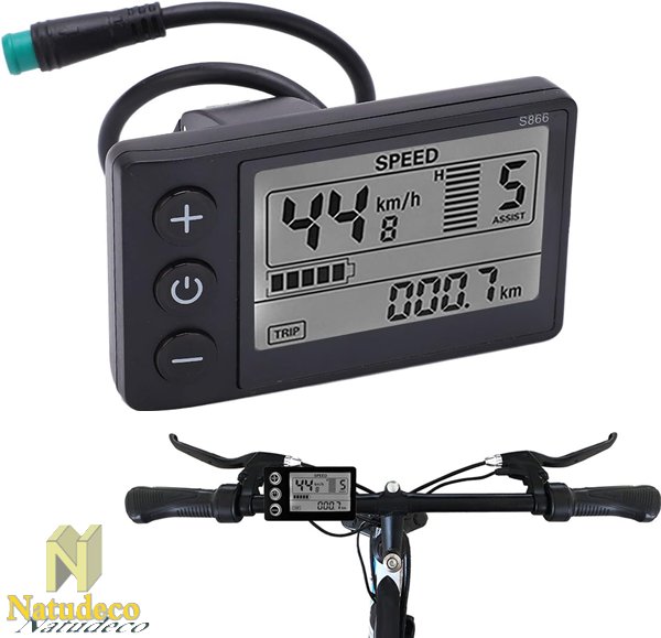 Natudeco Electric Bike LCD Display Control Panel with Waterproof Plug - black (model: S866)