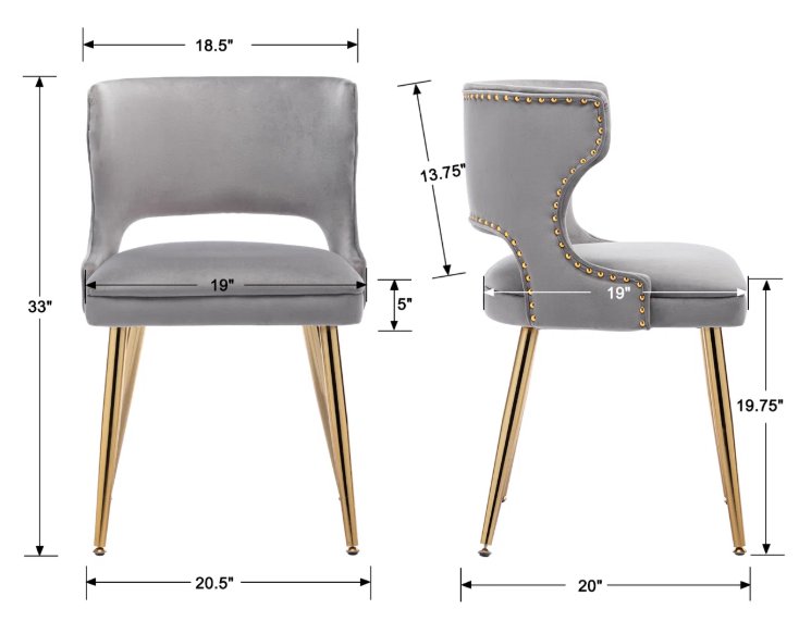 2PK MERCER41 Khanya Velvet Upholstered DINING CHAIR - GREY
