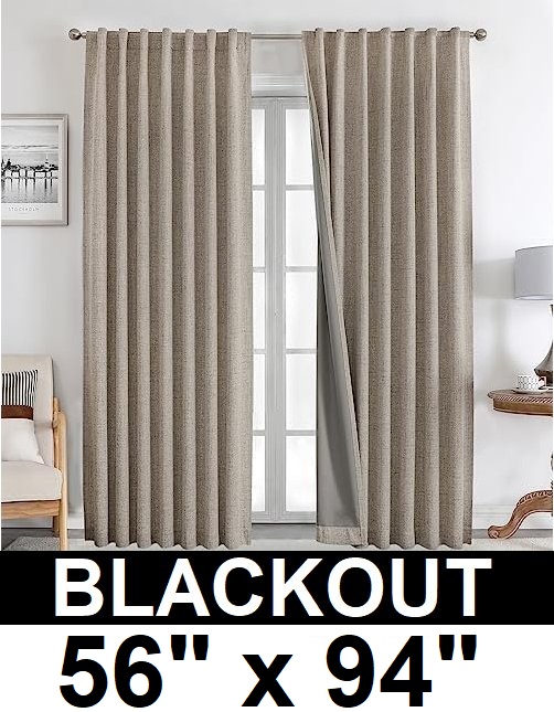(2 panels) premium quality 100% blackout long curtains - 56" x 94" - linen beige