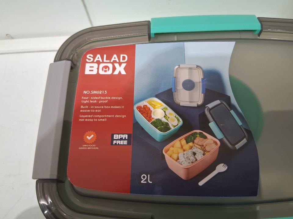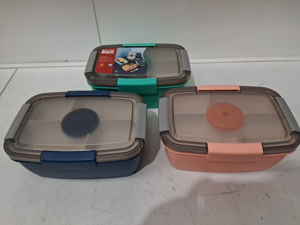 3pk unbranded 5 Compartment stackable salad container bento lunch box for meal prep - 2l - blue/green/pink