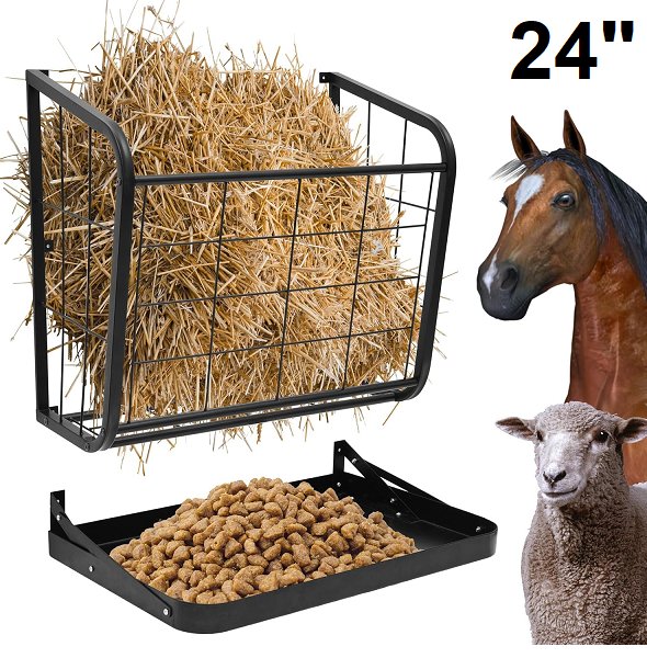 Galvanized Hay Feeder with Tray - 24" - (Model: ZP0029)
