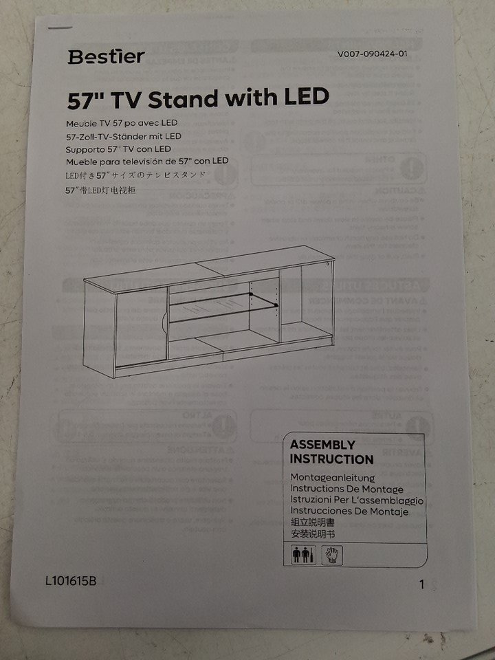 bestier led entertainment center with adjustable glass shelf - fits up to 65'' tvs - carbon fiber black (model: l101615b-bdcf)