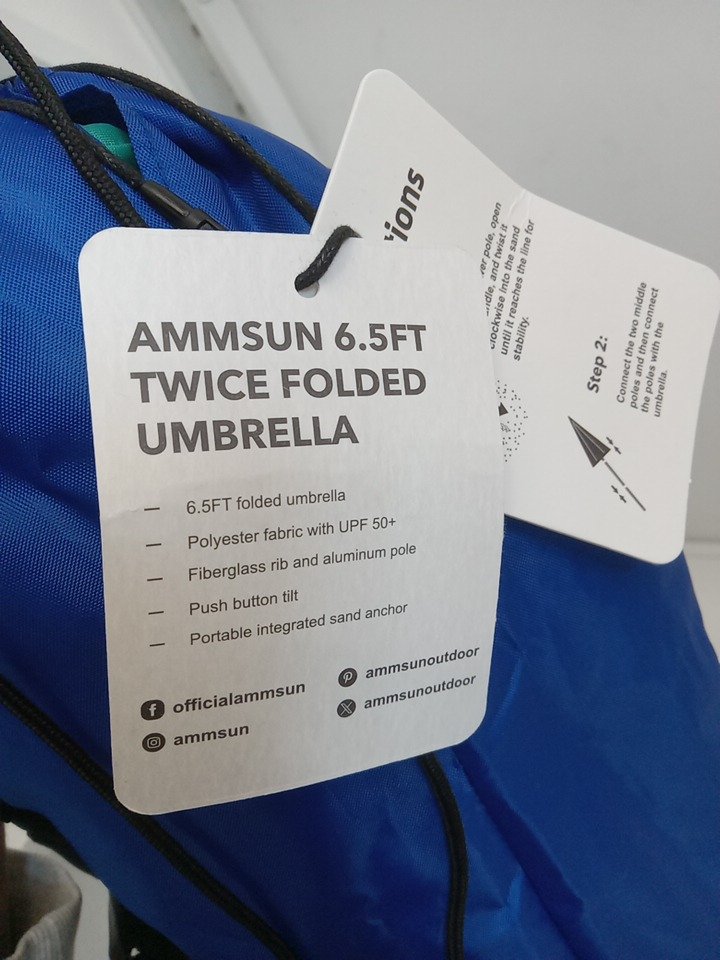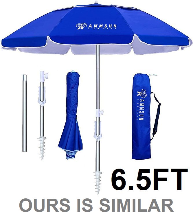 AMMSUN BEACH UMBRELLA WITH SAND ANCHOR AND CARRYING BAG - 6.5FT - BLUE