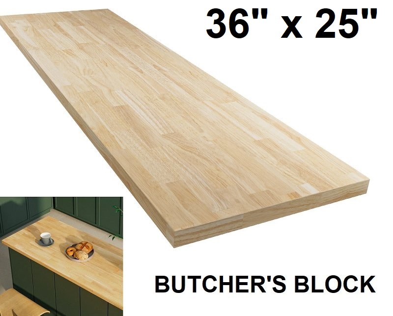 BME Bartlum Sturdy Solid Hevea Wood butcher's Block Countertop for Workbenches - 36" x 25" x 1.5" - natural (model: ud6x)