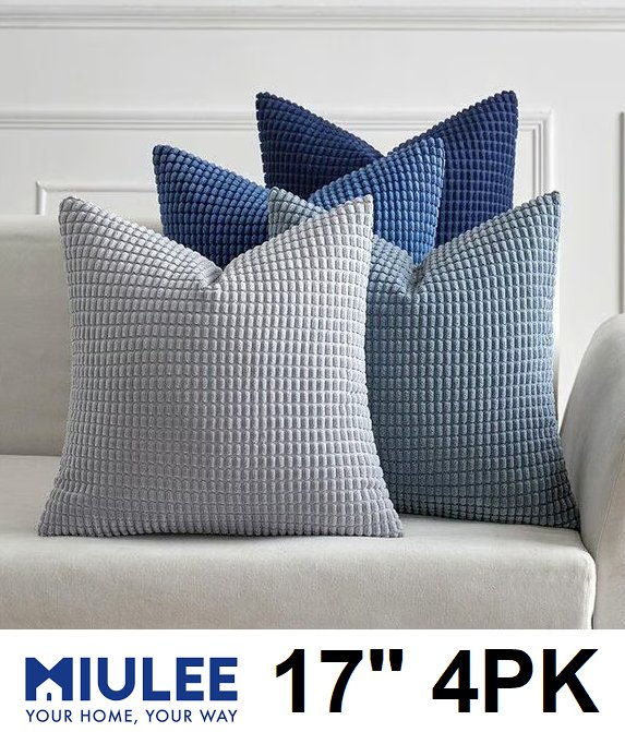 4PK MIULEE Blue Decorative square Pillow Covers/cases - 17" x 17" - shades of BLUE