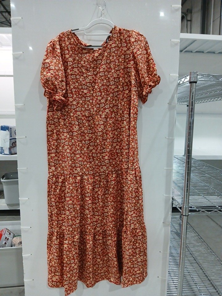 women's pretty garden casual summer short puff sleeve dress- medium - red floral