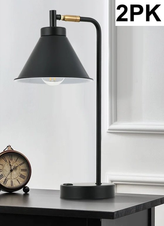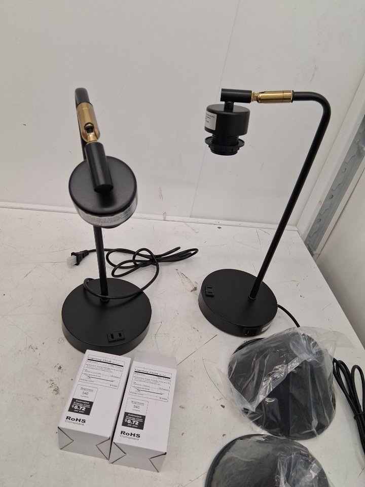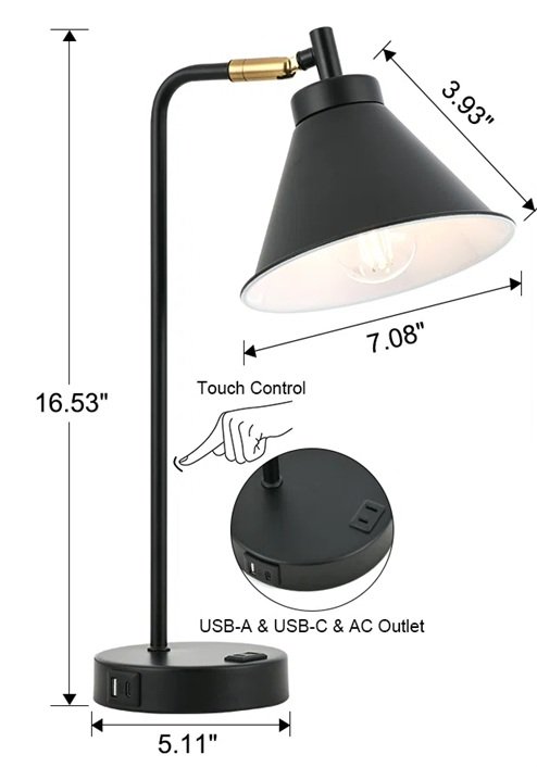 2pk Latitude Run touch control Dimmable Metal Touch Desk Lamp with USB and Type-C - 5.1" X 16.5" - black with gold accents