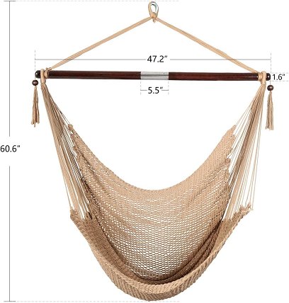bathonly caribbean swinging hammock chair with 330lbs capacity - light brown (model: ‎INAPPANE)
