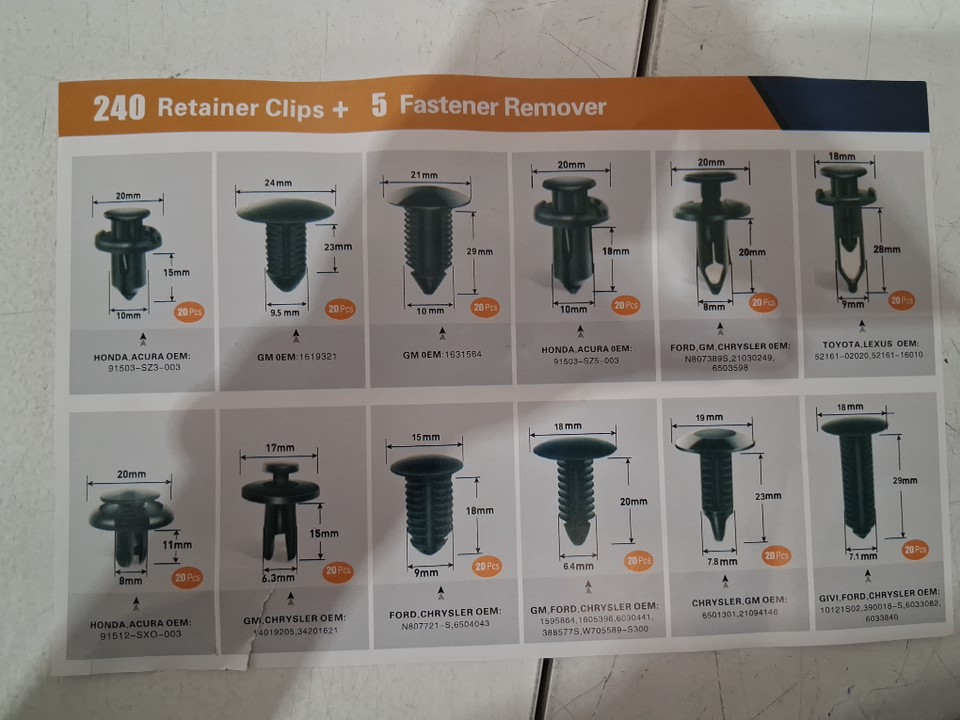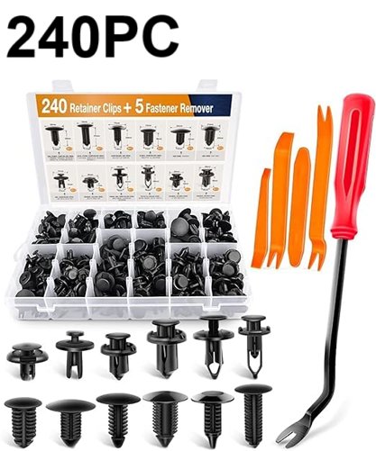 240PC RETAINER CLIPS AND 5 FASTNER REMOVER UNIVERSAL FIT KIT FOR CARS - BLACK
