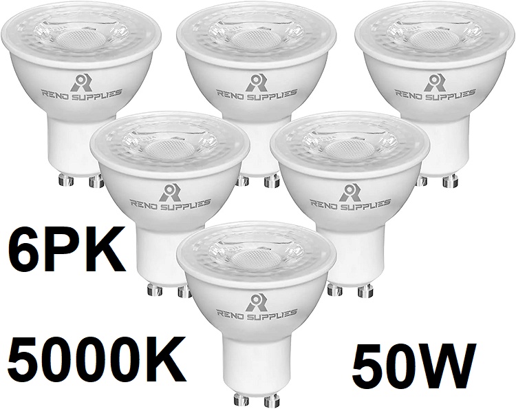 6pk reeno supplies LED Bulbs - 50W - 500LM - 5000k - GU10 - white