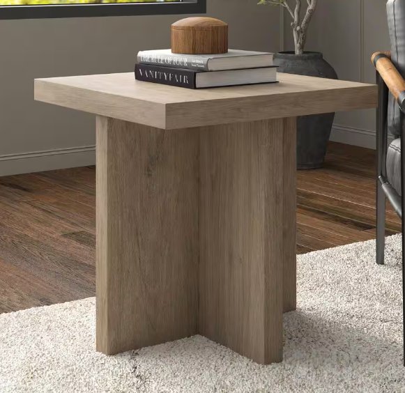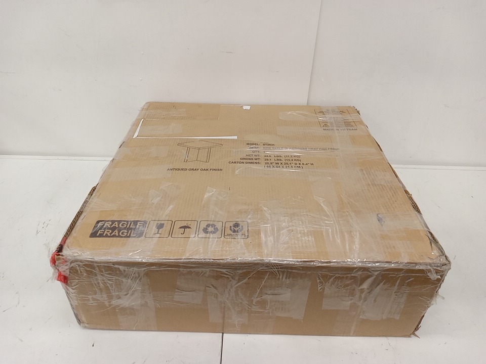 elna antiqued square mdf top end table - 22" x 22 - grey oak (model: st2031)