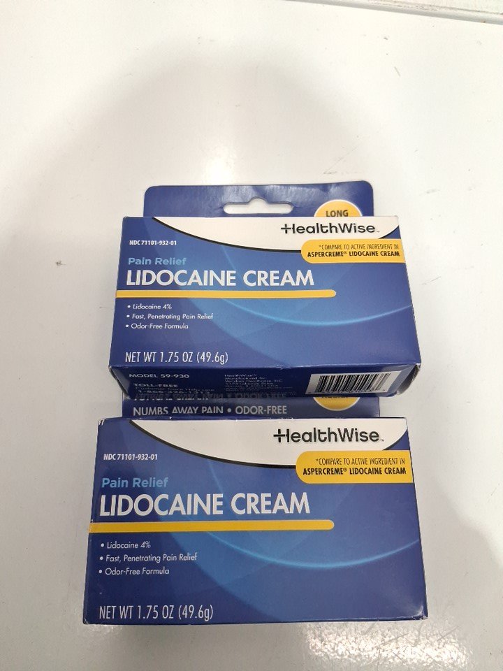 2 healthwise pain relief lidocaine cream, numbs the pain - 49.6g