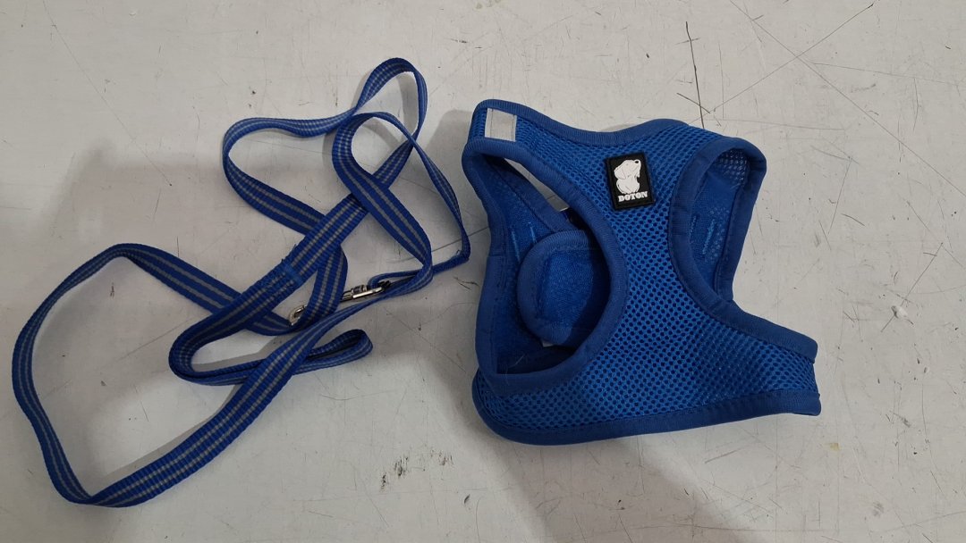 2PC DOTON CAT HARNESS AND LEASH SET SOFT AND COMFORTABLE WITH BREATHABLE MESH - LARGE - BLUE