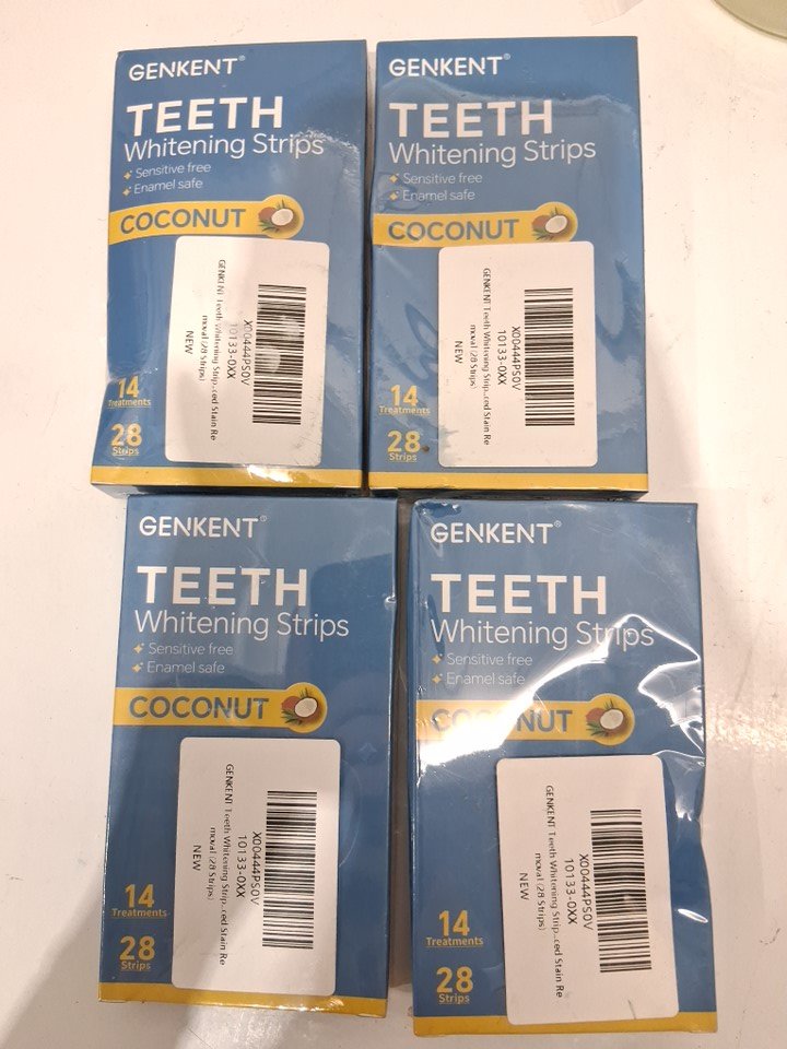 4 (28 strips) genkent sensitive-free & enamel safe teeth whitening strips - 56 treatments total - coconut