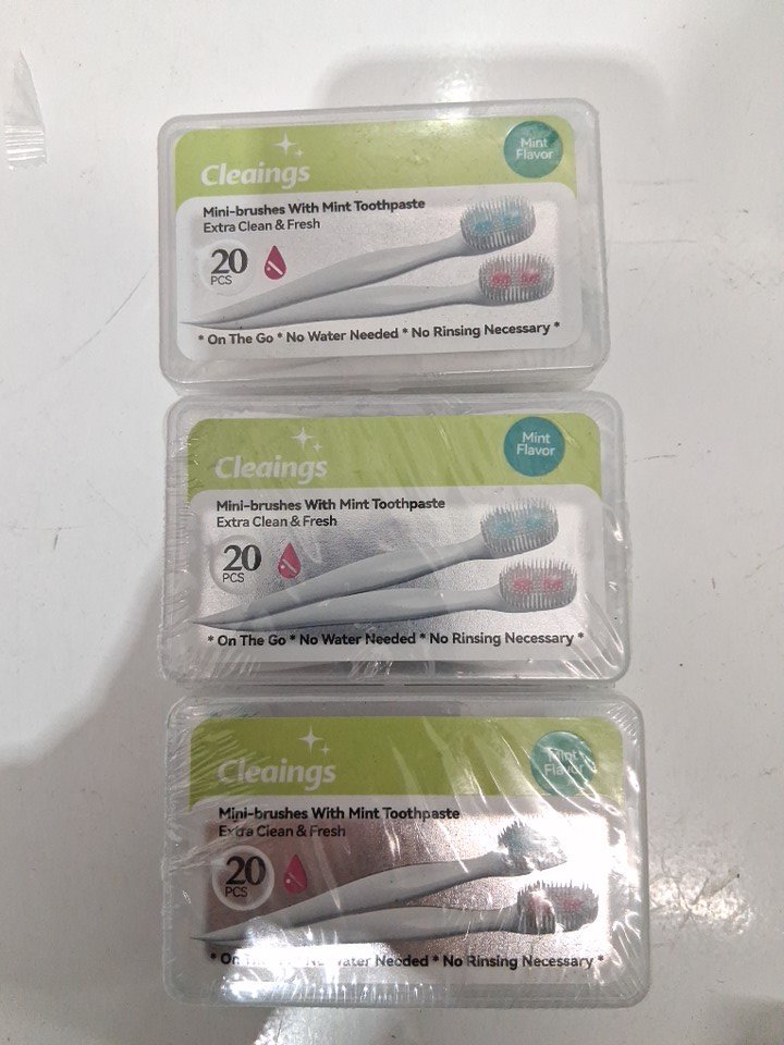 3(20pc) cleaings travel mini brushes with mint toothpaste - white