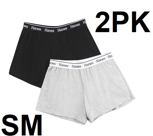 2PK womens Hanes Originals Sleep, Comfywear Lounge, Pajama Shorts - SMALL - grey/black