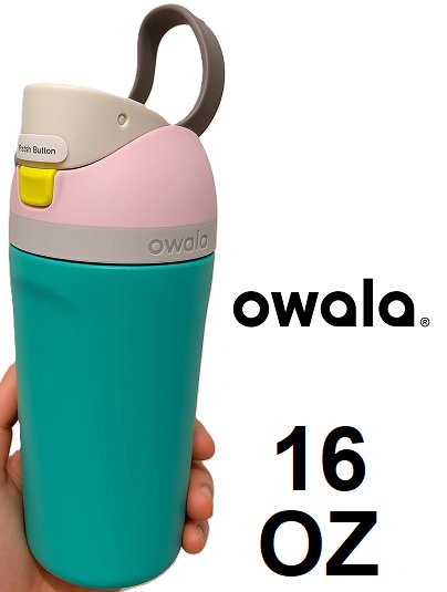 OWALA FLIP STAINLESS STEEL water bottle WITH STRAW - 16oz - cyan/pink