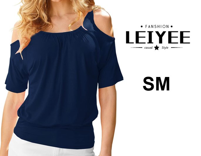Womens LEIYEE Cold Shoulder Short Sleeve Scoop Neck Blouse - SMALL - BLACK