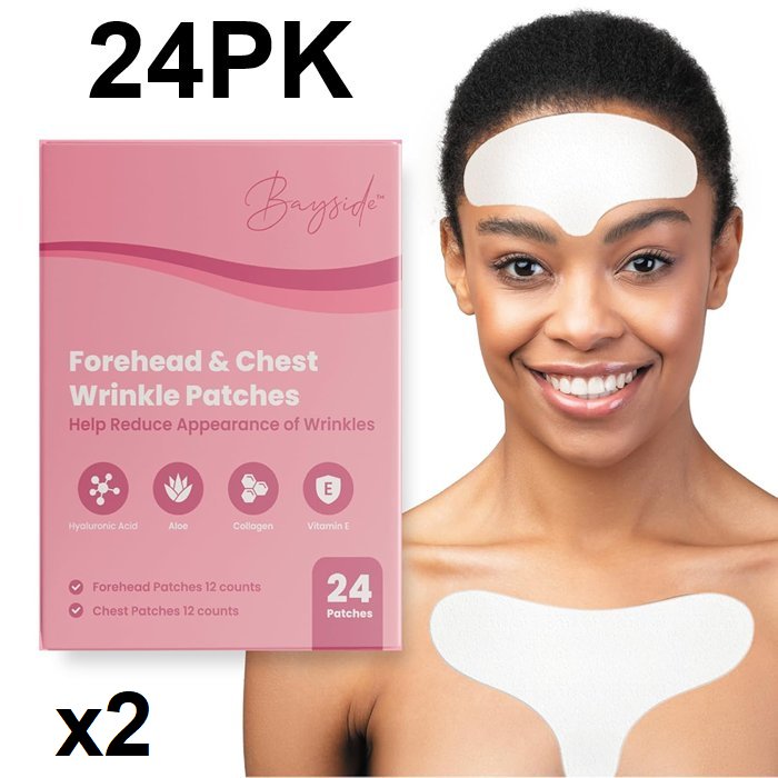 2 (24PK) Bayside Forehead & Chest Wrinkle Patches Set - Hyaluronic Acid Aloe Collagen Vitamin E