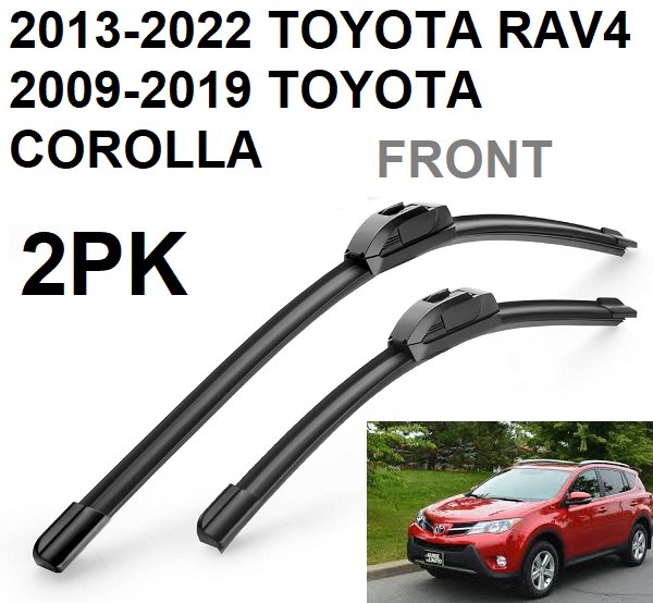 2Pk Replacement front windshield wiper blades - 2013-2022 Toyota Rav4 - 2009-2019 Toyota Corolla - 26" - 16" - Black (Model: TOR4-b-2616)